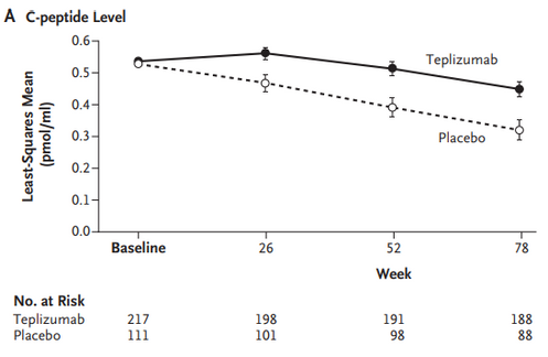 抗CD3抗体薬テプリズマブ12週vsプラセボ。