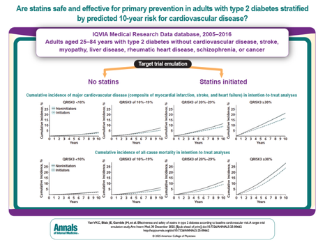 Yan VKC, Blais JE, Gamble JM, Chan EWY, Wong ICK, Wan EYF. Effectiveness and Safety of Statins in Type 2 Diabetes According to Baseline Cardiovascular Risk : A Target Trial Emulation Study. Ann Intern Med. Published online December 30, 2025. doi:10.7326/ANNALS-25-00662