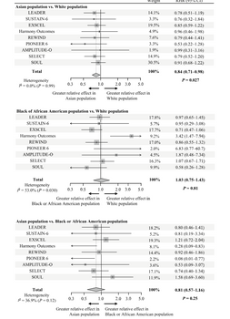 GLP-1受容体作動薬 vs プラセボで、主要心血管イベント(MACE)の発生リスクを人種別に比較
